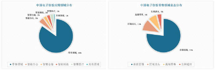 電子價(jià)簽在新零售實(shí)體店、生鮮超市、超市大賣場(chǎng)、傳統(tǒng)連鎖超市、精品專賣店、便利店、珠寶店、美妝店、家居生活店、3C電子店、會(huì)議室、倉(cāng)庫(kù)、藥房、工廠等業(yè)態(tài)均有滲透,總的來(lái)看,零售業(yè)態(tài)使用率最高,占據(jù)85%的市場(chǎng)份額。
